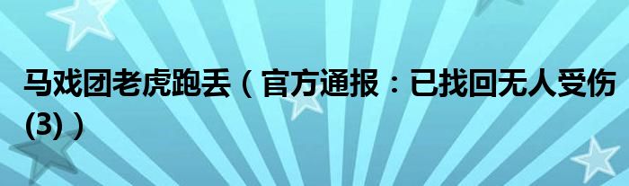 大家好,綜合小編來為大家講解下。馬戲團老虎跑丟,官方通報:已找回無人受傷(3)很多人還不知道,現在讓我們一起來看看吧!