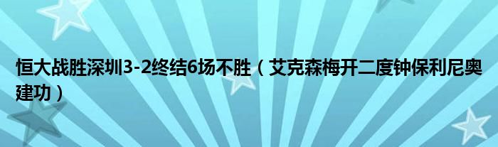 大家好,綜合小編來為大家講解下。恒大戰勝深圳3-2終結6場不勝,艾克森梅開二度鐘保利尼奧建功很多人還不知道,現在讓我們一起來看看吧!