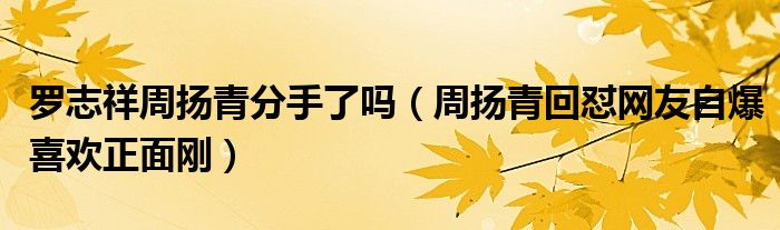 大家好,小安來為大家解答以上的問題羅志祥周揚青分手了嗎,周揚青回懟網友自爆喜歡正面剛這個很多人還不知道,現在讓我們一起來看看吧!