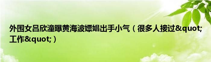 大家好,小安來為大家解答以上的問題外圍女呂欣潼曝黃海波嫖娼出手小氣,很多人接過"工作"這個很多人還不知道,現在讓我們一起來看看吧!