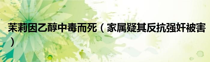 大家好,小安來為大家解答以上的問題茉莉因乙醇中毒而死,家屬疑其反抗強奸被害這個很多人還不知道,現在讓我們一起來看看吧!