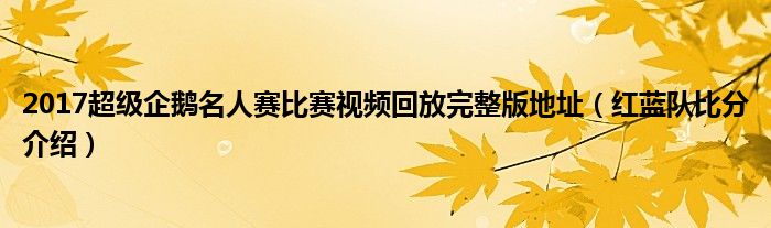 大家好,小安來為大家解答以上的問題2017超級企鵝名人賽比賽視頻回放完整版地址,紅藍隊比分介紹這個很多人還不知道,現在讓我們一起來看看吧!