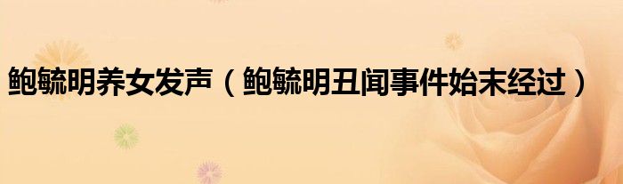 大家好,綜合小編來(lái)為大家講解下。鮑毓明養(yǎng)女發(fā)聲,鮑毓明丑聞事件始末經(jīng)過(guò)很多人還不知道,現(xiàn)在讓我們一起來(lái)看看吧!