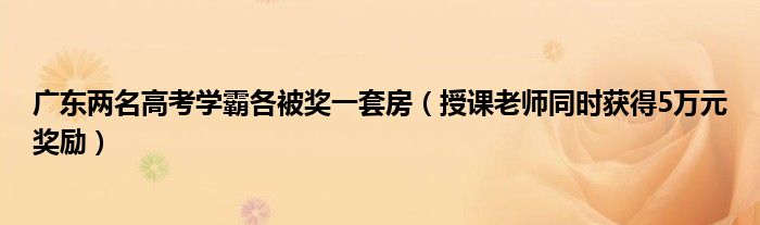 大家好,綜合小編來(lái)為大家講解下。廣東兩名高考學(xué)霸各被獎(jiǎng)一套房,授課老師同時(shí)獲得5萬(wàn)元獎(jiǎng)勵(lì)很多人還不知道,現(xiàn)在讓我們一起來(lái)看看吧!