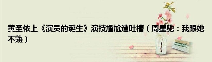 大家好,小安來為大家解答以上的問題黃圣依上《演員的誕生》演技尷尬遭吐槽,周星馳:我跟她不熟這個很多人還不知道,現在讓我們一起來看看吧!