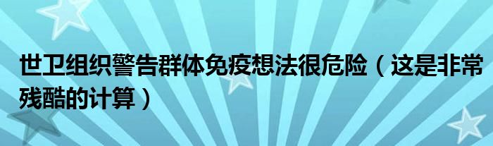 大家好,綜合小編來為大家講解下。世衛組織警告群體免疫想法很危險,這是非常殘酷的計算很多人還不知道,現在讓我們一起來看看吧!