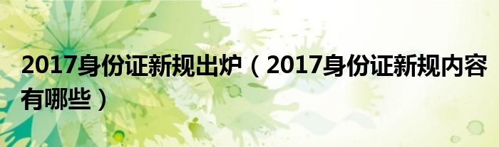 大家好,綜合小編來為大家講解下。2017身份證新規(guī)出爐,2017身份證新規(guī)內(nèi)容有哪些很多人還不知道,現(xiàn)在讓我們一起來看看吧!