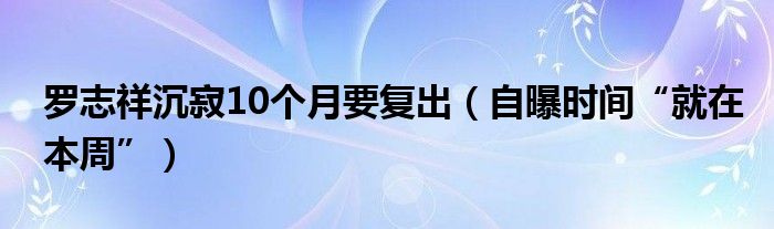 大家好,小安來為大家解答以上的問題羅志祥沉寂10個月要復出,自曝時間“就在本周”這個很多人還不知道,現在讓我們一起來看看吧!