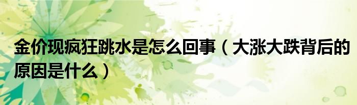 大家好,綜合小編來為大家講解下。金價現瘋狂跳水是怎么回事,大漲大跌背后的原因是什么很多人還不知道,現在讓我們一起來看看吧!
