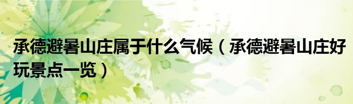 大家好,綜合小編來為大家講解下。承德避暑山莊屬于什么氣候,承德避暑山莊好玩景點一覽很多人還不知道,現在讓我們一起來看看吧!