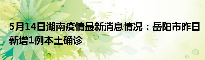 大家好,小安來為大家解答以上的問題5月14日湖南疫情最新消息情況:岳陽市昨日新增1例本土確診這個很多人還不知道,現在讓我們一起來看看吧!