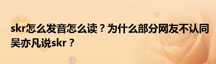 大家好,小安來為大家解答以上的問題skr怎么發音怎么讀?為什么部分網友不認同吳亦凡說skr?這個很多人還不知道,現在讓我們一起來看看吧!