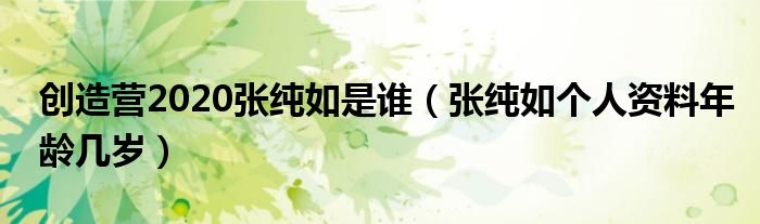 大家好,小安來為大家解答以上的問題創造營2020張純如是誰,張純如個人資料年齡幾歲這個很多人還不知道,現在讓我們一起來看看吧!