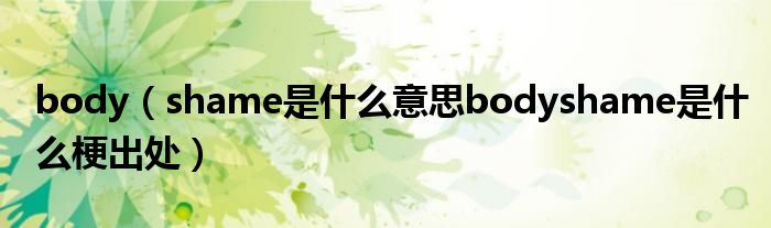 大家好,綜合小編來為大家講解下。body,shame是什么意思bodyshame是什么梗出處很多人還不知道,現在讓我們一起來看看吧!