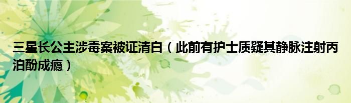 大家好,綜合小編來為大家講解下。三星長公主涉毒案被證清白,此前有護(hù)士質(zhì)疑其靜脈注射丙泊酚成癮很多人還不知道,現(xiàn)在讓我們一起來看看吧!