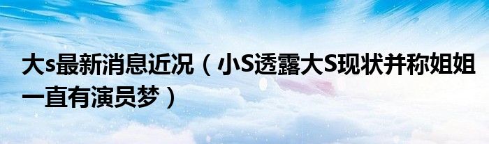 據(jù)臺(tái)媒方面的消息表示,近日藝人小S出席節(jié)目開播的記者會(huì),她在記者會(huì)上也透露了姐姐大S的近況,表示,姐姐一直都有演員夢(mèng),還稱大S的狀態(tài)非常好。