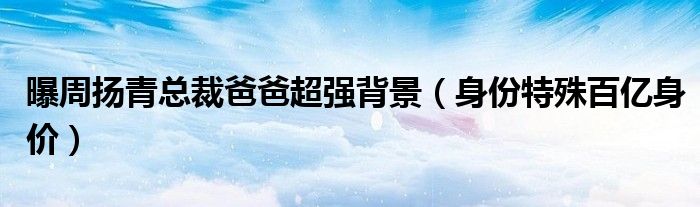 大家好,小安來為大家解答以上的問題曝周揚青總裁爸爸超強背景,身份特殊百億身價這個很多人還不知道,現在讓我們一起來看看吧!