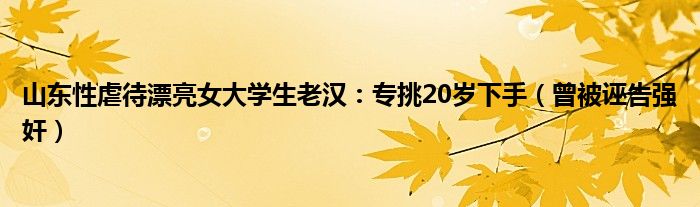 大家好,小安來為大家解答以上的問題山東性虐待漂亮女大學生老漢:專挑20歲下手,曾被誣告強奸這個很多人還不知道,現在讓我們一起來看看吧!