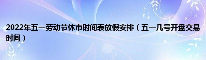 大家好,小安來為大家解答以上的問題2022年五一勞動節休市時間表放假安排,五一幾號開盤交易時間這個很多人還不知道,現在讓我們一起來看看吧!