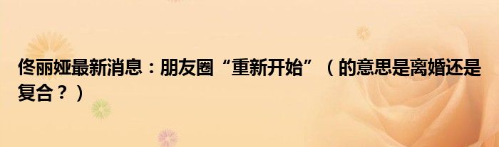 大家好,小安來(lái)為大家解答以上的問題佟麗婭最新消息:朋友圈“重新開始”,的意思是離婚還是復(fù)合?這個(gè)很多人還不知道,現(xiàn)在讓我們一起來(lái)看看吧!