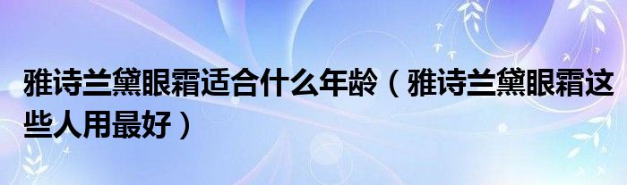 大家好,綜合小編來為大家講解下。雅詩蘭黛眼霜適合什么年齡,雅詩蘭黛眼霜這些人用最好很多人還不知道,現在讓我們一起來看看吧!