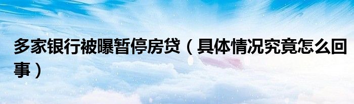 大家好,綜合小編來為大家講解下。多家銀行被曝暫停房貸,具體情況究竟怎么回事很多人還不知道,現(xiàn)在讓我們一起來看看吧!