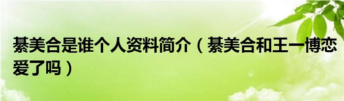 大家好,綜合小編來為大家講解下。綦美合是誰個人資料簡介,綦美合和王一博戀愛了嗎很多人還不知道,現在讓我們一起來看看吧!