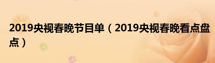 大家好,綜合小編來為大家講解下。2019央視春晚節目單,2019央視春晚看點盤點很多人還不知道,現在讓我們一起來看看吧!