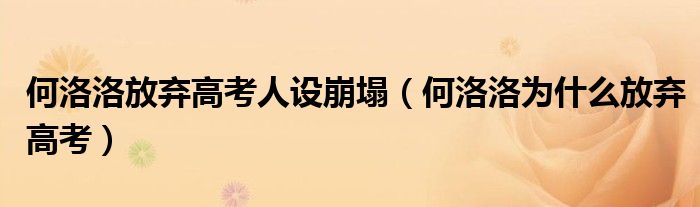 大家好,綜合小編來為大家講解下。何洛洛放棄高考人設崩塌,何洛洛為什么放棄高考很多人還不知道,現在讓我們一起來看看吧!