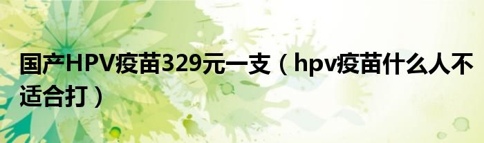大家好,綜合小編來為大家講解下。國產HPV疫苗329元一支,hpv疫苗什么人不適合打很多人還不知道,現在讓我們一起來看看吧!