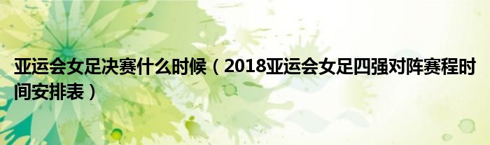 大家好,綜合小編來為大家講解下。亞運會女足決賽什么時候,2018亞運會女足四強對陣賽程時間安排表很多人還不知道,現(xiàn)在讓我們一起來看看吧!