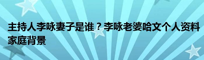 大家好,小安來為大家解答以上的問題主持人李詠妻子是誰?李詠老婆哈文個人資料家庭背景這個很多人還不知道,現在讓我們一起來看看吧!