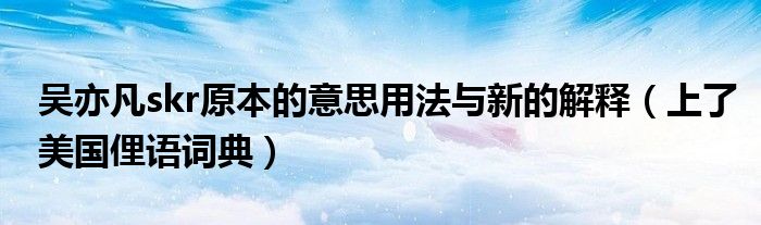 大家好,小安來為大家解答以上的問題吳亦凡skr原本的意思用法與新的解釋,上了美國俚語詞典這個很多人還不知道,現在讓我們一起來看看吧!