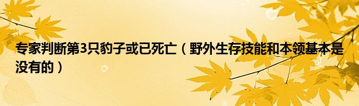 大家好,綜合小編來(lái)為大家講解下。專(zhuān)家判斷第3只豹子或已死亡,野外生存技能和本領(lǐng)基本是沒(méi)有的很多人還不知道,現(xiàn)在讓我們一起來(lái)看看吧!