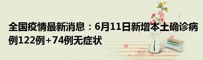 大家好,小安來為大家解答以上的問題全國疫情最新消息:6月11日新增本土確診病例122例+74例無癥狀這個很多人還不知道,現在讓我們一起來看看吧!