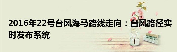 大家好,小安來為大家解答以上的問題2016年22號臺風(fēng)海馬路線走向:臺風(fēng)路徑實(shí)時發(fā)布系統(tǒng)這個很多人還不知道,現(xiàn)在讓我們一起來看看吧!
