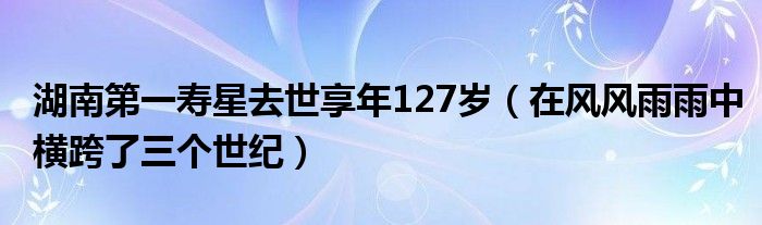 大家好,綜合小編來為大家講解下。湖南第一壽星去世享年127歲,在風風雨雨中橫跨了三個世紀很多人還不知道,現在讓我們一起來看看吧!