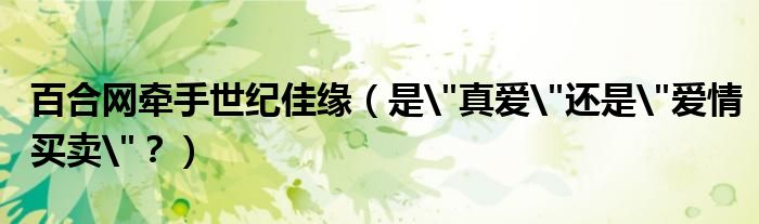 大家好,小安來為大家解答以上的問題百合網(wǎng)牽手世紀(jì)佳緣,是"真愛"還是"愛情買賣"?這個(gè)很多人還不知道,現(xiàn)在讓我們一起來看看吧!