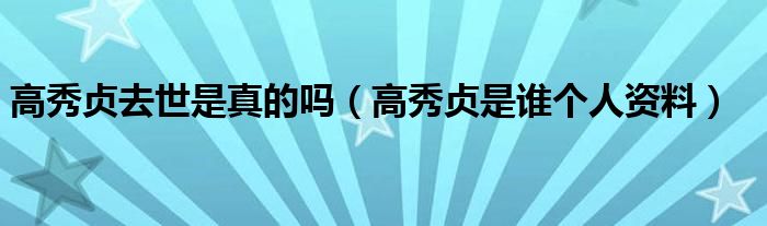 大家好,綜合小編來為大家講解下。高秀貞去世是真的嗎,高秀貞是誰個人資料很多人還不知道,現在讓我們一起來看看吧!
