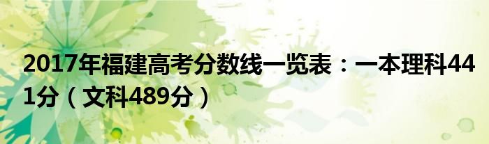 大家好,小安來為大家解答以上的問題2017年福建高考分數線一覽表:一本理科441分,文科489分這個很多人還不知道,現在讓我們一起來看看吧!