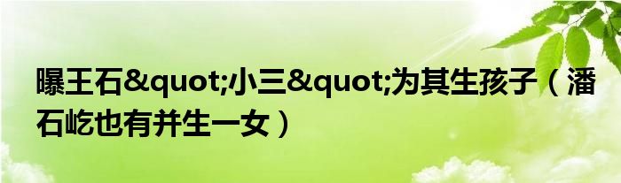 大家好,小安來為大家解答以上的問題曝王石"小三"為其生孩子,潘石屹也有并生一女這個很多人還不知道,現(xiàn)在讓我們一起來看看吧!