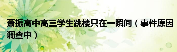 大家好,小安來(lái)為大家解答以上的問(wèn)題蕭振高中高三學(xué)生跳樓只在一瞬間,事件原因調(diào)查中這個(gè)很多人還不知道,現(xiàn)在讓我們一起來(lái)看看吧!