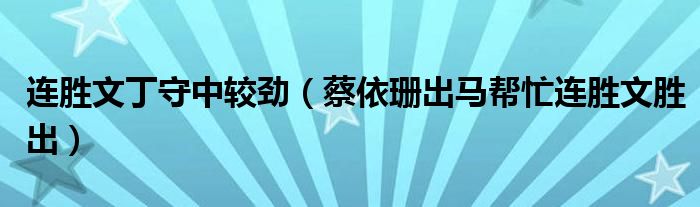 大家好,小安來為大家解答以上的問題連勝文丁守中較勁,蔡依珊出馬幫忙連勝文勝出這個(gè)很多人還不知道,現(xiàn)在讓我們一起來看看吧!