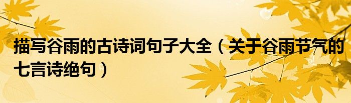 大家好,小安來為大家解答以上的問題描寫谷雨的古詩詞句子大全,關于谷雨節氣的七言詩絕句這個很多人還不知道,現在讓我們一起來看看吧!