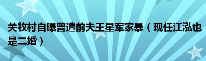 大家好,小安來為大家解答以上的問題關牧村自曝曾遭前夫王星軍家暴,現任江泓也是二婚這個很多人還不知道,現在讓我們一起來看看吧!