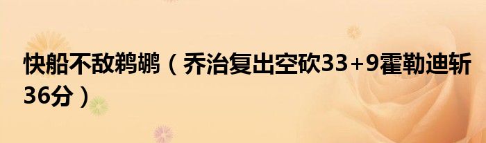 大家好,綜合小編來為大家講解下。快船不敵鵜鶘,喬治復出空砍33+9霍勒迪斬36分很多人還不知道,現在讓我們一起來看看吧!