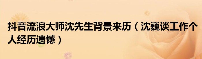 大家好,小安來為大家解答以上的問題抖音流浪大師沈先生背景來歷,沈巍談工作個人經歷遺憾這個很多人還不知道,現在讓我們一起來看看吧!