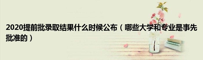 大家好,綜合小編來為大家講解下。2020提前批錄取結果什么時候公布,哪些大學和專業是事先批準的很多人還不知道,現在讓我們一起來看看吧!
