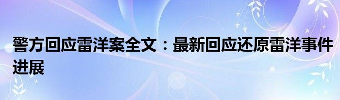大家好,小安來(lái)為大家解答以上的問(wèn)題警方回應(yīng)雷洋案全文:最新回應(yīng)還原雷洋事件進(jìn)展這個(gè)很多人還不知道,現(xiàn)在讓我們一起來(lái)看看吧!