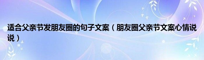 大家好,綜合小編來為大家講解下。適合父親節(jié)發(fā)朋友圈的句子文案,朋友圈父親節(jié)文案心情說說很多人還不知道,現(xiàn)在讓我們一起來看看吧!